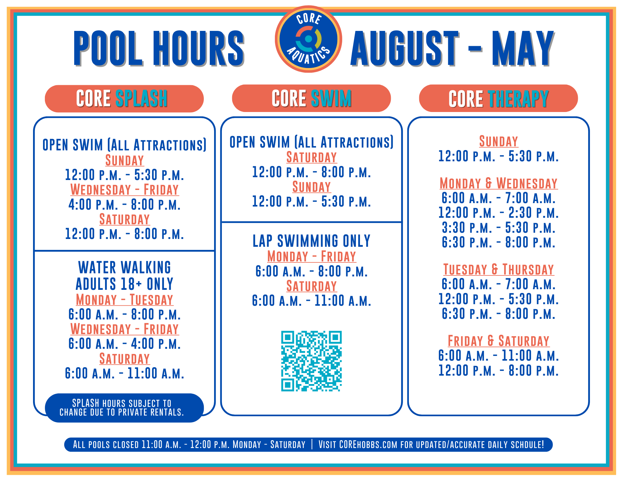 See the graphic below for a quick overview of the Aquatics Fall Hours.